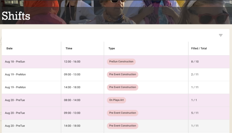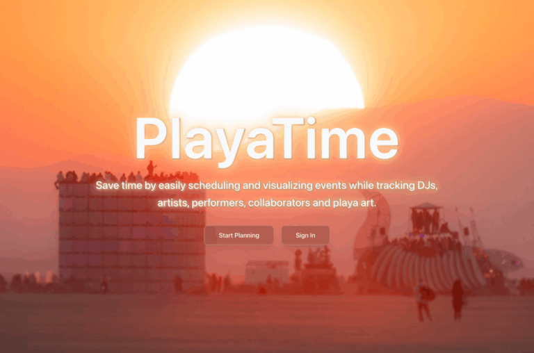 Modern easy-to-use app for scheduling events, tracking DJs, artists, performers, collaborators and playa art.