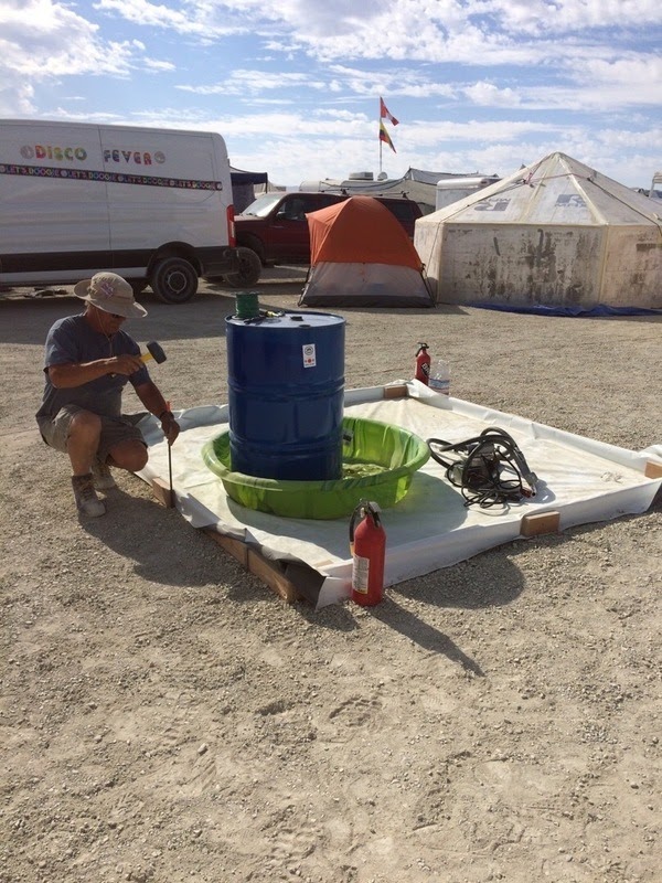 Preventing spills on the surface of the Black Rock desert is essential to our continued use of this resource for our event. It is also important to be good stewards of public lands and to leave no trace. The playa surface itself adds to the challenge because of its absorbent nature. Spill response and containment control materials should be kept on hand to deal with any spill quickly. Basic fuel spill kits should include a shovel and a sealable container for storage of the contaminated playa until you can take it with you post event for disposal.