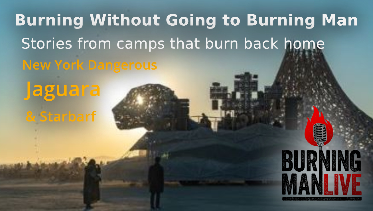 Yes it is Burning Man Live. This is actually live-live from Black Rock City in Nevada. I’m Stuart Mangrum, and I am talking to a couple of the principals from a pretty interesting — I don’t know what to call it when it’s a camp on playa and it’s a community off playa — but it has a very cool name: New York Dangerous.
