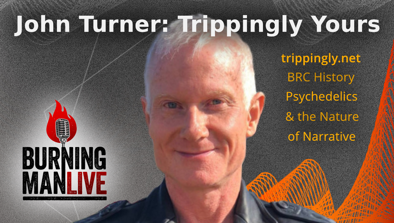 Psychedelics advocate and amateur Burning Man scholar John Turner’s two passions come together in one interdimensional rabbit-hole of a website: Trippingly.net. In compiling the ultimate fan site of Burning Man history, John has captured a lot of great playa stories, and he shares some of the best in this conversation with Stuart.