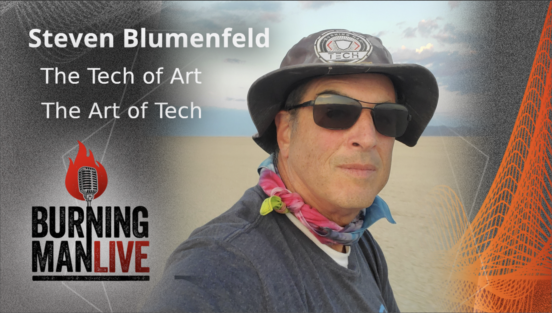 STUART: Well, I usually start by welcoming all of my invisible friends back to another episode of Burning Man Live, reminding them that I am still, in fact, Stuart Mangrum. I have not yet been replaced by our artificial intelligence, and telling them who my guest is. My guest is: he’s a neighbor, actually, He lives just a short drone flight away. He is Burning Man’s Chief Technology Officer, Steven Blumenfeld. Hi, Steven.