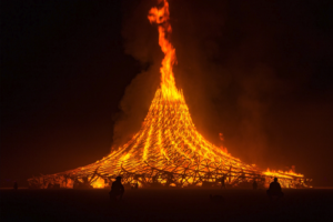 A. No, Burning Man’s in-house pyro team will make sure it burns quickly and evenly. This team will meet with you early in your planning to make sure the Temple is built in a way that can be burned and collapsed in a predictable and safe manner. Your help will be needed early Sunday to strike the non-burnables and to help place the additional firewood.
